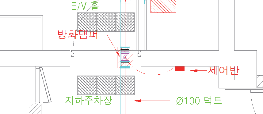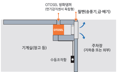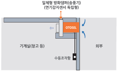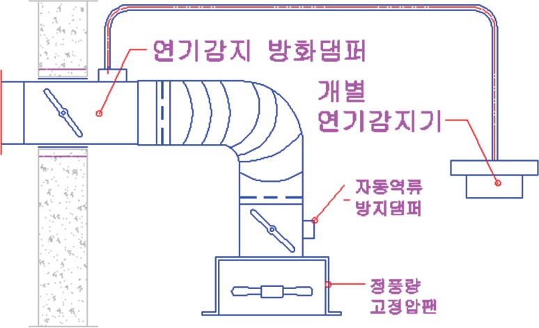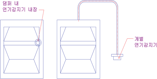 | 동작구성 및 설치 | 댐퍼 근처에 연감지센서 독립 설치, 연기감지시 방화댐퍼 닫힘 |